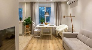 Handover of fully finished apartment including ceiling, wall, floor, kitchen, sanitary equipment, cabinet system (sink, wardrobe, kitchen cabinet). Central hot water system and Multi air conditioner.